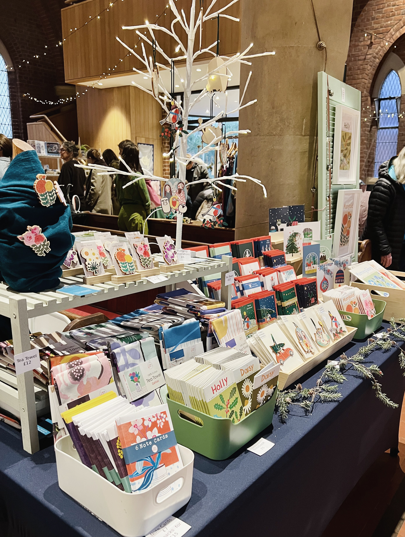 A very festive time at my stall during the Newnham Church Advent Fair, where I showcased my new wooden Christmas decorations.