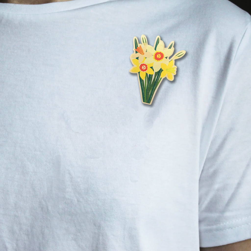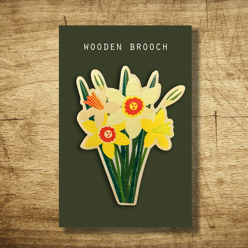 Striking Wooden Brooch with bar badge pin 7cm x 5cm